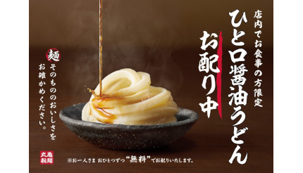 丸亀製麺、店内飲食の来店客に「ひと口醤油うどん」を期間限定で無料提供。全店への麺職人配置記念で