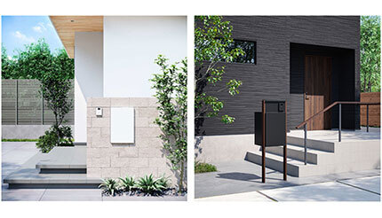 ポストと宅配ボックスの外扉は、外構に馴染みやすいシンプルなデザインを追求して1枚扉を採用し、ポストと宅配ボックスを一体にすることで導入コストや施工手間の軽減を実現している。