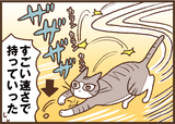 他の3匹(リュー、ニナちゃん、リンちゃん)は、年齢が上なのもあって人に構われたいとかがそもそもあんまりなく、気が向いた時や魚を焼いた時はちょっと来る……という感じなのですが、ハルちゃんとトトは常時構われたがりで年がら年中人のまわりをウロウロしているので、漫画のように、何か食べ物を落としたりすると大体この2匹のどちらかに持っていかれます(笑)