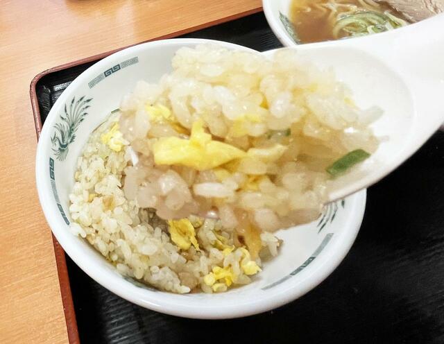 そして、この中華そばと合わせていただく半チャーハンは、卵の風味が全体に広がる一品である一方、具材のゴロゴロ感も十分。