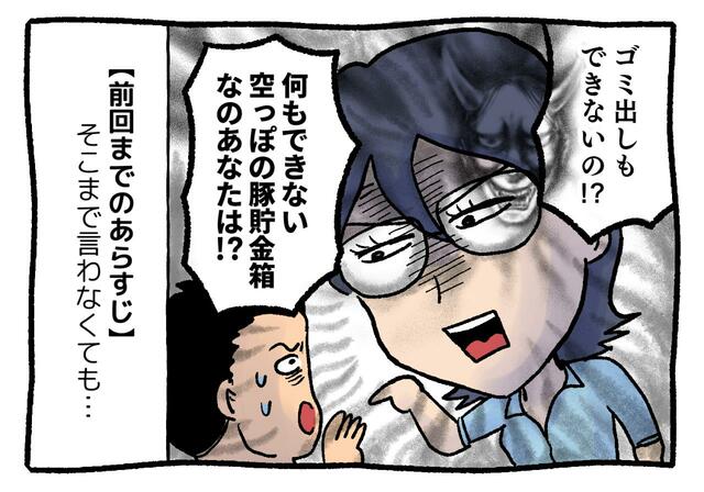 ゴミ出しを忘れ、やけに厳しめに注意されてしまった夫・マサシ。