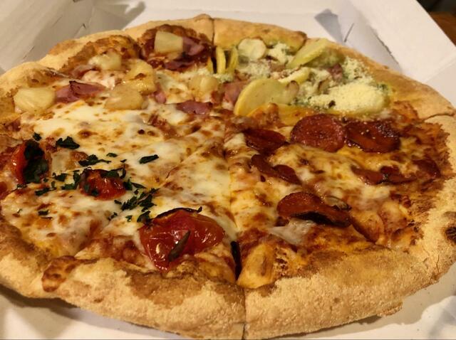 ドミノ・ピザの人気の味が一度に楽しめるクワトロ・ハッピー。いろんな味を楽しめて文句なく美味しく大満足の一品です。