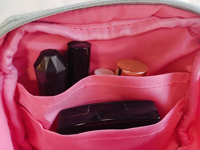 中には、ポケットが2つ、反対側にもポケットが1つあるので、コスメもすっきり収納できます。