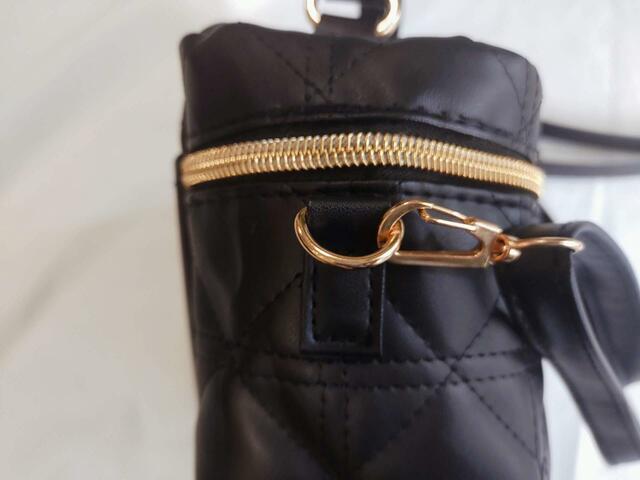 サイド部分には、ショルダーを取り付けできるDカンがついているので、付属のショルダーをつけて肩からもかけられます。