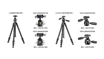 VANGUARDから、「VEO 5」シリーズとしてアルミ三脚4モデル、カーボン三脚4モデルが登場