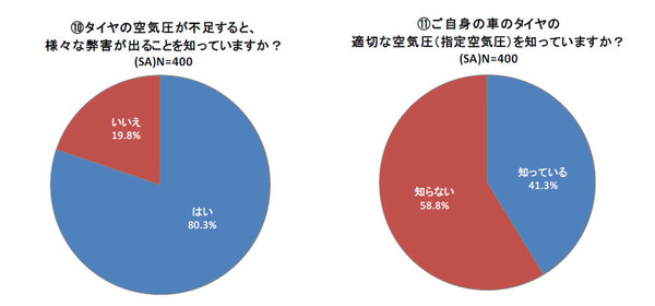 ここで、一般社団法人日本自動車タイヤ協会が実施した、20代~50代の自家用車を所有するドライバー男女400名を対象に「自家用車のタイヤの空気圧点検に関する意識調査」を調べてみました。