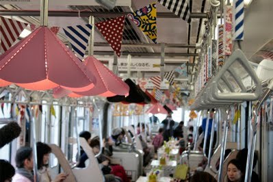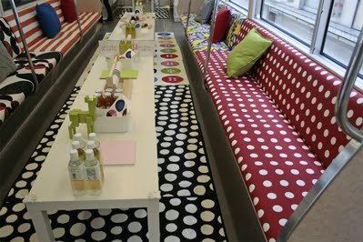 ガーラント、カーテン、つり革、中刷りまで、車内のあらゆるものがIKEA風にデコレーション。 ファミリーメンバーの子供たちが入った瞬間に大騒ぎするその気持ちもよくわかります。