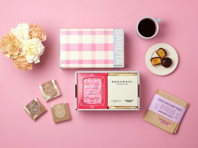 猿田彦珈琲では母の日に向けて、オリジナルブレンド「マザーズデイブレンド」をはじめ、猿田彦神社の象徴的な八角形をモチーフにした「みちひらきカヌレ」やコーヒーの出涸らしを再利用した「珈琲で染めたハンドタオル」「DEEPAXX オーガニック珈琲ソープ」など、ギフトにぴったりのラインナップを発売します。