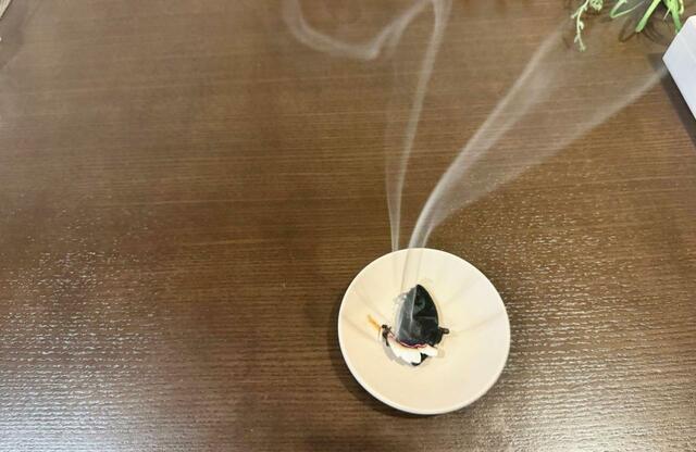 燃焼時間は9分ほど。紙の燃える臭いは特になく、お香の心地よい香りを堪能できました。