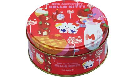 北陸製菓、ハローキティ50周年限定デザインを使用した「ハローキティ50thビスケット缶」を数量限定発売