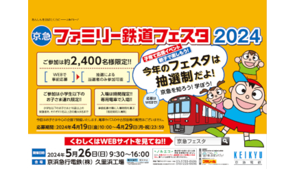 京浜急行電鉄は5月26日に、「京急ファミリー鉄道フェスタ2024」を京急電鉄久里浜工場(神奈川県横須賀市)にて開催する。