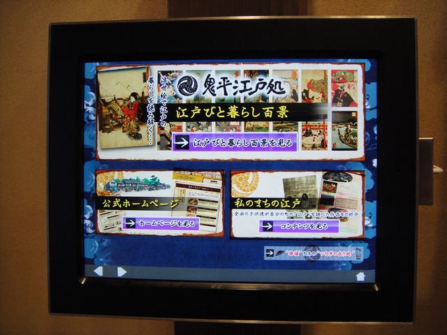 「かわら版コーナー」にあるiPadでは、さまざまな浮世絵画像に解説を加えた「江戸びと暮らし百景」を通して、江戸の社会、住まいや暮らし、フトコロ事情やファッション、食などなど、多方面から当時の人々のリアルな姿を偲ぶことができます。