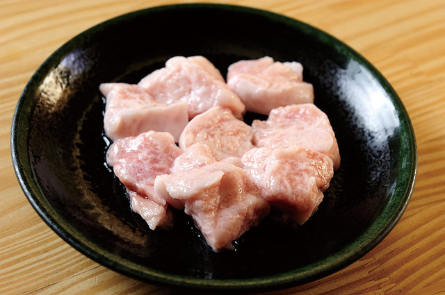 豚胸 630円 歯ざわりが独特の豚胸。この部位は豚の甘みを感じられるため、できる限り、脂の多いものを仕入れている