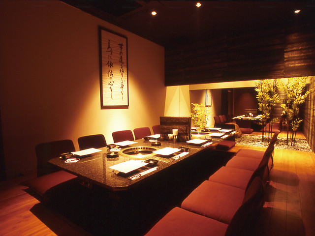 煙突式の無煙ロースターを設置。テーブル席、掘りごたつ、2名から利用できる個室などがある 拡大画像表示