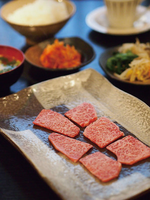 上カルビ定食 2100円(約70g)黒毛和牛のリブロースまたはA5カルビを使用。11:00 ~ 15:00のランチタイム限定のお得な定食