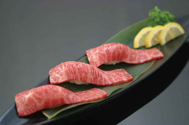 徹底した衛生管理で提供可能になった「山形牛 牛にぎり」(1貫480円) 拡大画像表示