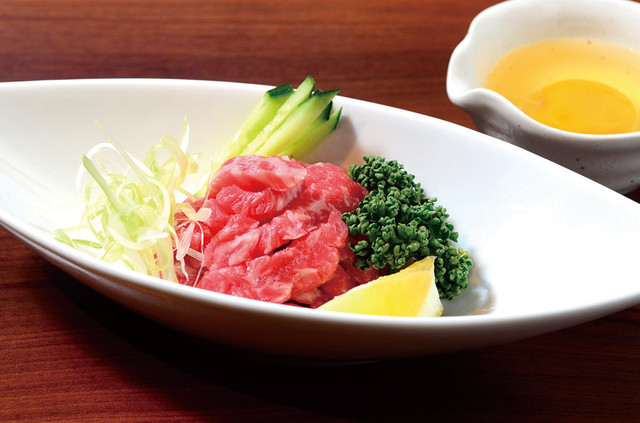 おいしい肉を安全に食べてもらうことをコンセプトに、オープンから約3年、地元で愛される店。芝浦市場から直接買い付ける肉はA5ランクの黒毛和牛のみ。衛生管理も徹底されていて、行政許可を得て、ユッケの提供を再開した。
