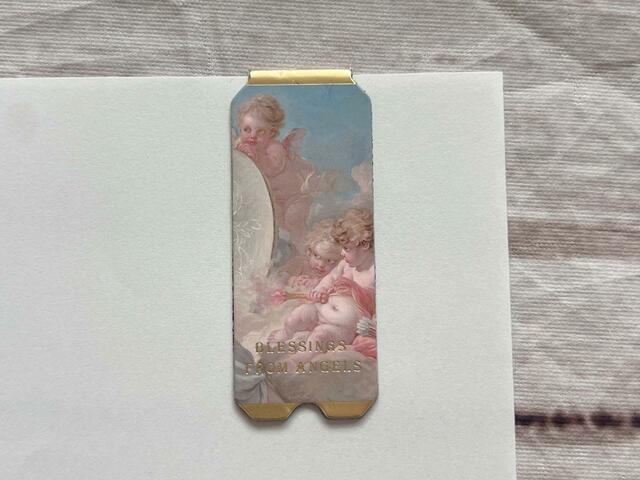 天使だけでなく美しい貴婦人も描かれたデザインが印象的なポイントマグネット。