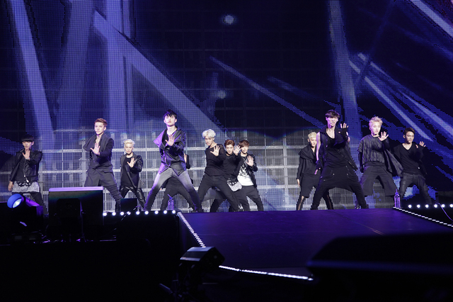 左からベクヒョン、セフン、スホ、ディオ、チャンヨル、カイ、ルハン、クリス、タオ、レイ、シウミン、チェン拡大画像表示