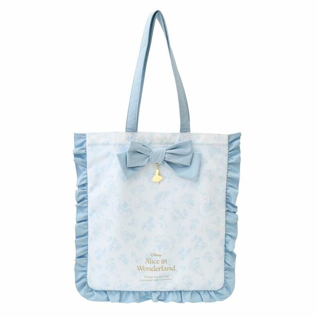 水色のリボンとフリルがついた、シルエットから可愛らしいバッグです。