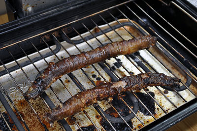 そのまま焼いていただきます。パリッとした皮にプリッとした食感、そして濃厚な味わい。うん、まさに珍味です。2本1,050円。オンラインショップでも購入可能。