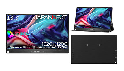 JAPANNEXT(ジャパンネクスト)は、13.3インチIPSパネルを採用したWUXGA(1920×1200)解像度のモバイルディスプレイ「JN-MD-IPS133WUXGAR」を4月26日に発売した。実勢価格は2万2980円。