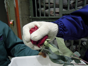 凍らせておいたバラを握ると、パリパリパリといったかんじで粉砕していった。
