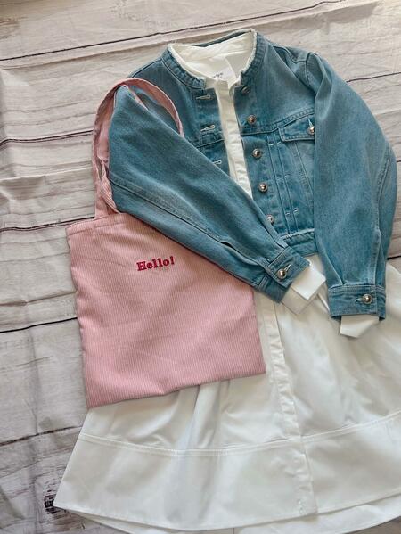 今回は、デニムジャケットにホワイトのミニシャツドレスに合わせてみました。