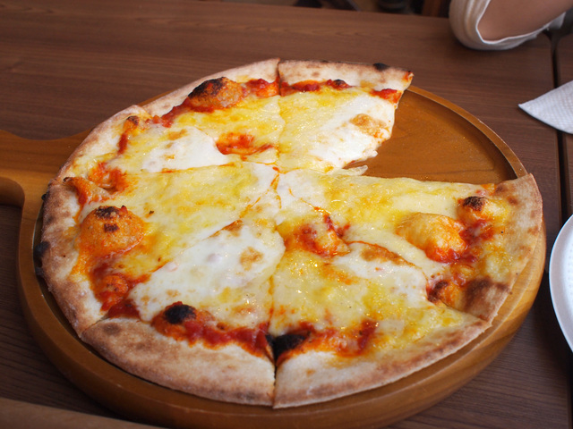 まずは、ワイルドダイニングでやまと豚のロースカツカレー(\1,030)と、ピザ窯を使って焼き上げられた4種のチーズピザ(\930)で腹ごしらえ。