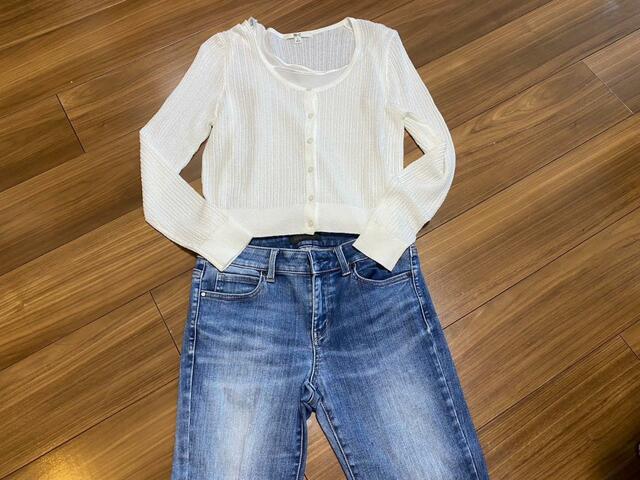 筆者が購入したホワイトなら、断然ブルーデニムがおすすめ!春夏らしい爽やかな印象になりますし、小物も合わせやすいです。