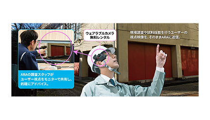 また、正確・迅速に、コストをかけずに現地調査を進められるよう、ウェアラブルカメラレンタル費、遠隔サポート費ともに無料で提供する。対象は、サービス利用時のアスベスト分析(有償)を同社に委託する企業。