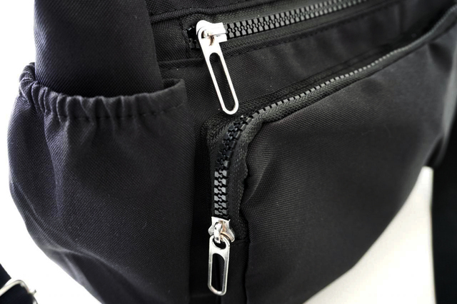 ファスナーが特徴的なバッグです。スライダーの部分が空洞になっています。