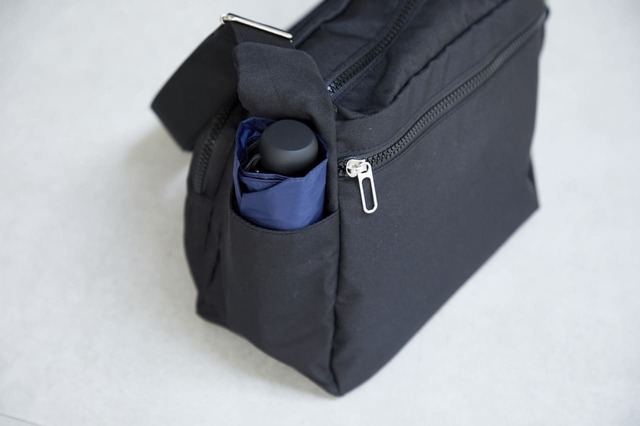 使いやすさ最重視のショルダーバッグ。前面上部にはファスターポケット。深めなので大きいものも入ります。マチのある立体ポケットには、鍵などすぐに取り出したいものを入れると◎。