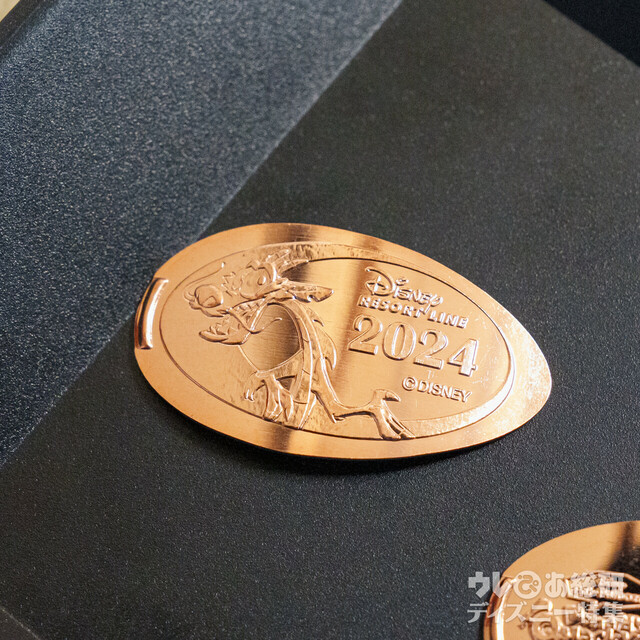 「ディズニー・パルパルーザ“ドナルドのクワッキー・ダックシティ”」柄のスーベニアメダルはリゾートラインの4つの駅に1種類ずつ4種類あります。