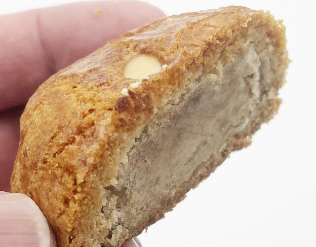 かなり厚めで、生地にたっぷりと練りこまれたアーモンドの風味は優しくふくよかな味わい。