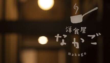 様々な業態の店が集まる京町屋の路地「もみじの小路」の一番奥。2023年7月にオープンした『洋食屋なかご』は、カウンターのある、しっとりとした大人の洋食店である。一人でも訪れやすい気軽なランチもいいが、ぜひ夜に二人以上で行ってほしい。