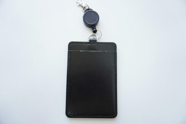ブラック一色のシンプルなパスケースです。レザー調生地で高級感があります。