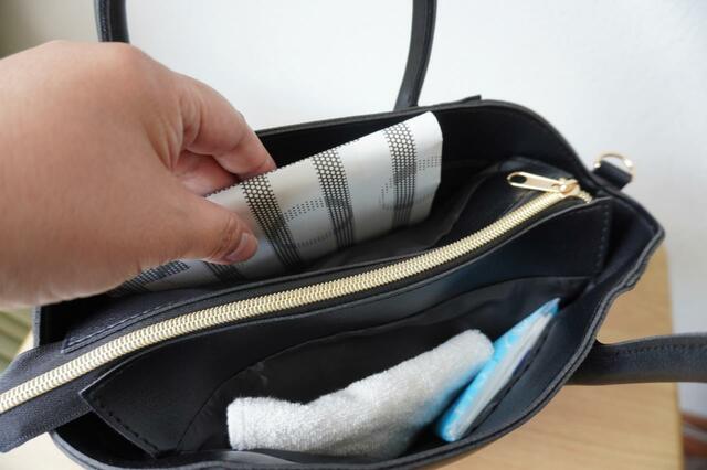 ハンカチやティッシュなど、すぐに取り出したいものを入れておくのにちょうどよさそうなポケットですね。