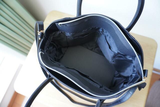 バッグのシルエットをキープできる底板付きです。