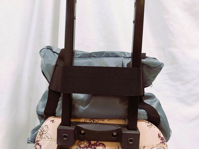 スーツケースに取り付けるときは、雑誌やA4サイズのクリアファイルなど、中の形を固定できるものを入れるといいかもしれません。