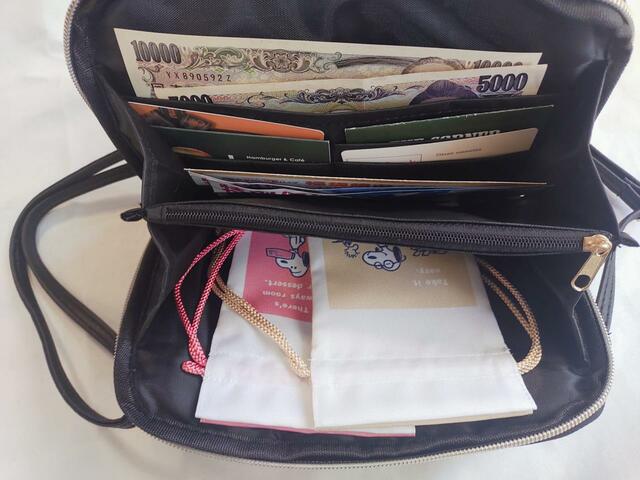 懸念点としては、ポーチ部分が横向きの長財布仕様になっているので、縦で使うと中の物が見づらい点です。