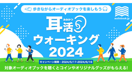 オトバンクは6月16日までの期間、オーディオブック配信サービス「audiobook.jp(オーディオブックドットジェイピー)」で歩きながらオーディオブックを楽しむキャンペーン「耳活ウォーキング2024」を実施している。