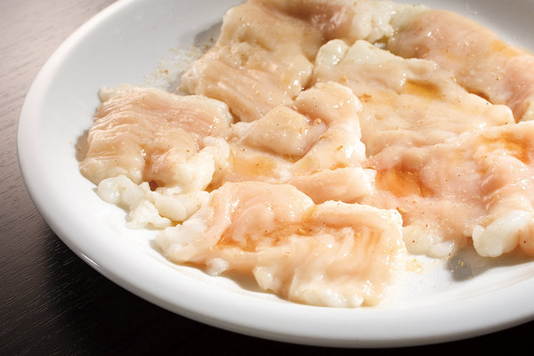 テッチャン 700円 脂ののった和牛のテッチャン( 大腸) を塩味で提供。ツヤツヤの表面を見れば、その新鮮さは一目瞭然だ