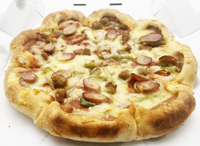 ピーマン、オニオン、マッシュルームという鉄板野菜と濃厚なトマトソースによる本格的なアメリカントッピングに、ペパロニサラミ、イタリアンソーセージ、あらびきスライスソーセージをのせた食べ応え抜群の1枚。