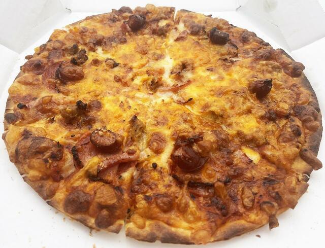 宅配ピザチェーン3社の中でも強いパンチを感じるメニューが多い「ピザーラ」ですが、今回いただいた「チェダー オールスターミート」も見た目からしてもうすごいです。