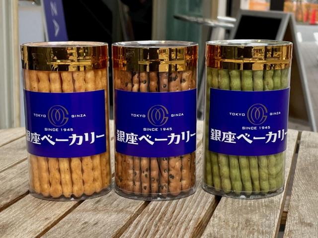 【銀座ベーカリー】 「アスパラガスビスケット」によく似た『銀座ベーカリー』の「Gスティック」。左から野菜、セサミ、枝豆