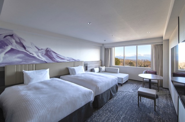 チェックインを済ませたらまずはお部屋へ。部屋のタイプはスーペリアツイン。客室によって富士山や八ヶ岳を望むことができます。