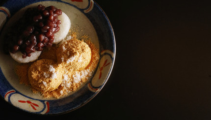 店自慢のあんこをたっぷり使用。きなこにほんの少しかかった砂糖はいいアクセントに。あんこだけ、きなこだけ、あんこときなこをダブルがけで、お好みでどうぞ――。