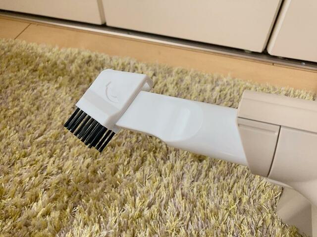 ゴミがついたら掃除機スタンドの下に差し込み、掃除機のスイッチを押せばモップのゴミをきれいに吸い取ってくれます。