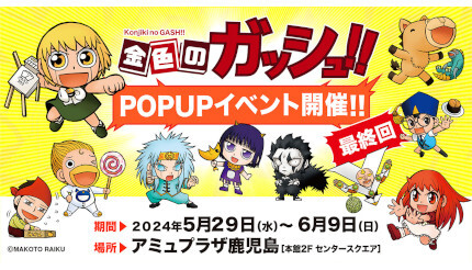 ケンエレファントは5月29日~6月9日の期間、マンガ『金色のガッシュ!!』をテーマにしたPOPUP SHOPを、アミュプラザ鹿児島(鹿児島県鹿児島市)本館2階のセンタースクエアで開催する。